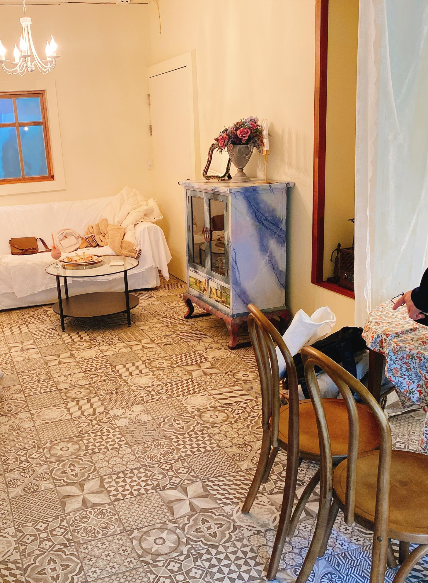 1층도 구경하러 내려갔는데 사람들이 꽤 있어서 사진 찍기가 힘들었다. 2층과는 다른 분위기지만 아늑하고 깔끔하면서 동화같은 느낌은 동일하다. 곳곳에 뚫린 넓은 창과 엔틱한 소품들이 카페 분위기를 한층 더 살려준다.