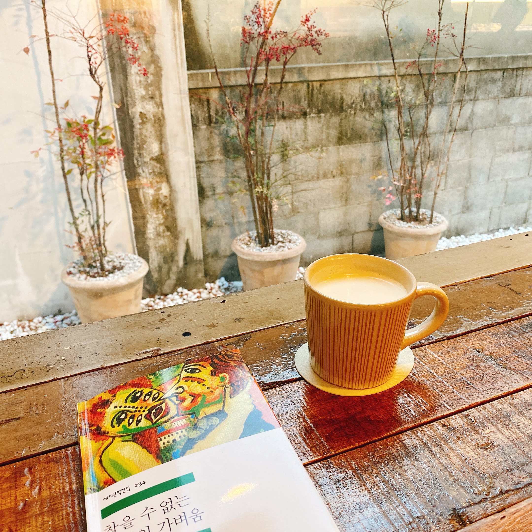 얼그레이 밀크티를 주문 후 맞은편에 있는 창가앞 테이블에 앉아 여유를 부려봤다.