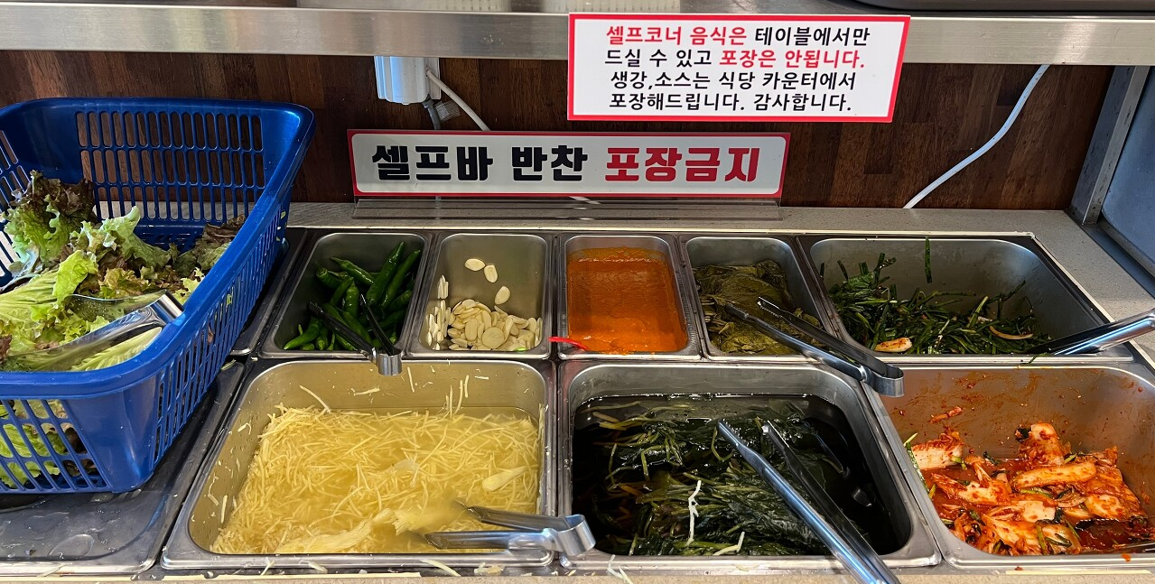 반찬은 기본 세팅 외에는 셀프바에서 가져와서 먹으면 된다.
