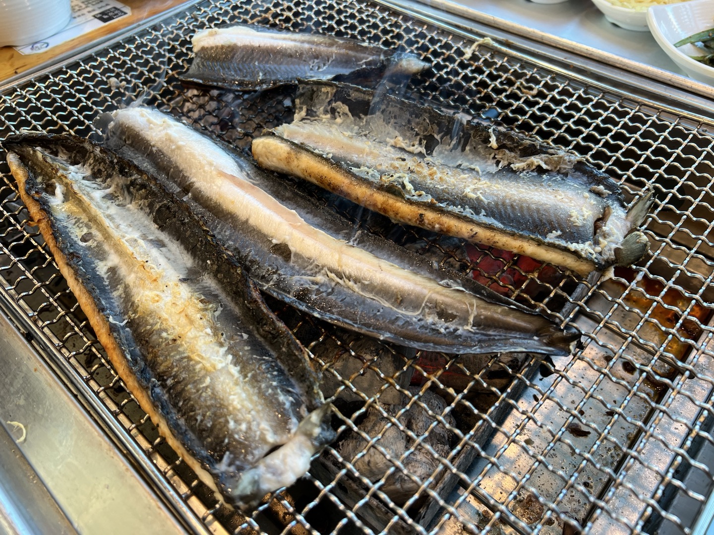 장어 껍질쪽부터 굽고 뒤집어서 천일염을 쫌 뿌려주고